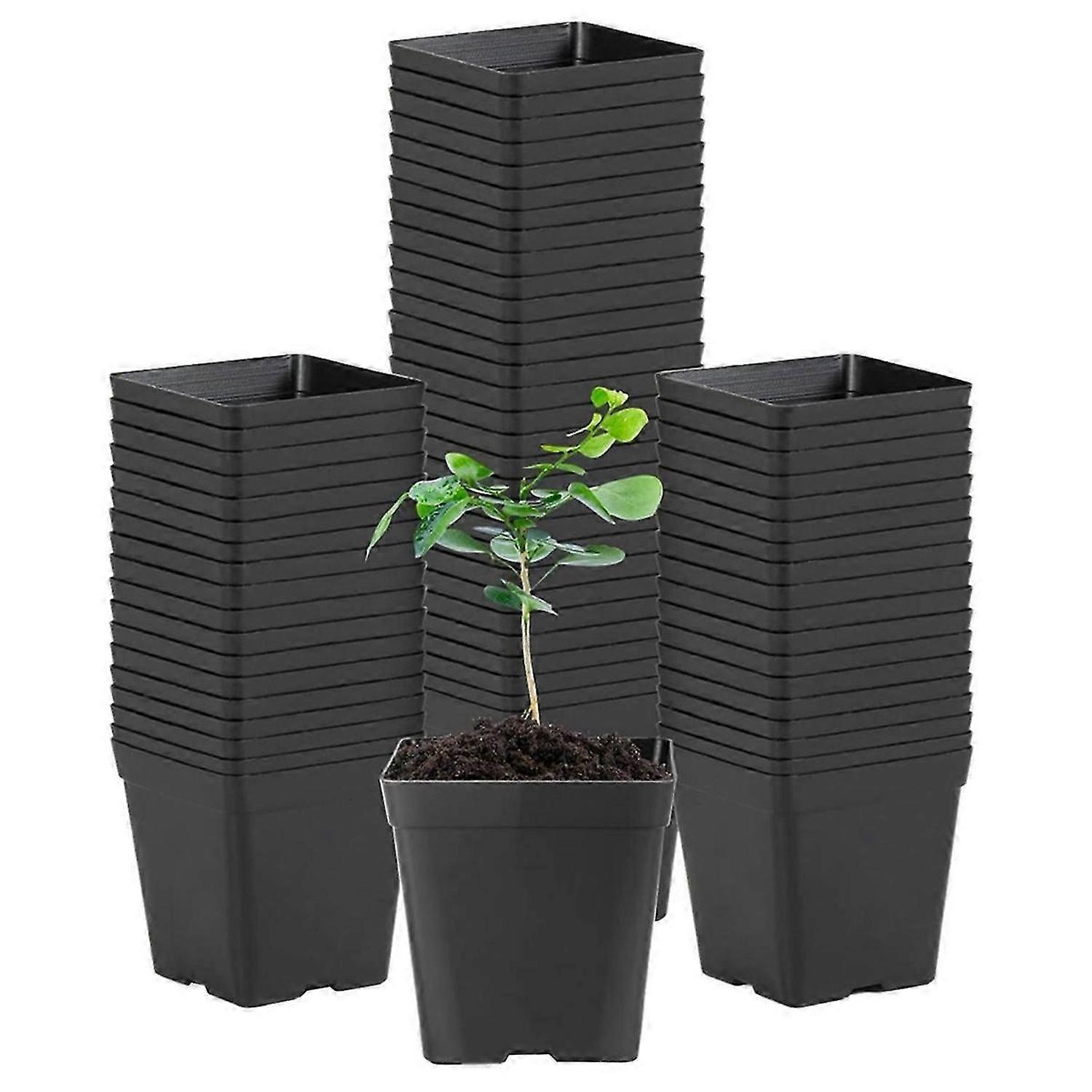 Versatile Growing Essentials Set: Our set includes 100 nursery pots to invest in your gardening hobby. Measure the top diameter, height and bottom diameter. A complete package for all your growing needs. Compact space-saving design: The square design allows the pots to be arranged more closely, maximizing planting space. These pots are suitable for sowing, cutting and transplanting. BUILT TO LAST: Our seedling pots are flexible and resistant to damage. The seedling pots are made of sturdy plastic to prevent accidental bumps and drops. These planters are easy to clean and can be reused for multiple seasons, extending their lifespan. Efficient Drainage Holes: Drainage holes promote airflow and help drain excess water. The sunken design of the holes helps the plants breathe more freely and helps the roots absorb nutrients optimally. Countless Applications: Whether it's a greenhouse project or an outdoor gardening task, our planters are suitable for any type of planting. perfect for landscaping, flower displays, and home gardening, these planters are a great choice for projects that require a large number of planters.<br><br>Colour:Black Material:plastic<br><br>Package Contents: 100 x seedling pot<br><br>Only the above package content, other products are not included. Note: Light reflection and different displays may cause the color of the item in the picture a little different from the real thing. The measurement allowed error is +/- 1-3cm.