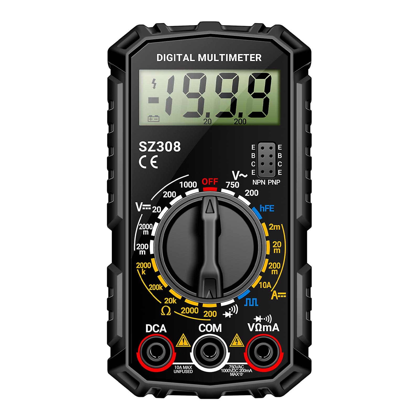 Features:Accurates Readings: Provides precise measurements with high accuracy, ensuring reliable results for troubleshooting circuits, testing components and diagnosing problems.Portable Design: This digital multimeter is compact and easy to carry. Its exquisite workmanship can provide high-precision and high-sensitivity functions. The multi-function designed multimeter is easy to use.Versatilemeasurement: Ables to measure various electrical parameters such as voltage, current, resistance, continuity, capacitance, etc., providing versatility for different applications.Multi-Function Tool: A versatile tool used for electrical testing and troubleshooting in automotive, industrial, residential and commercial environments, providing comprehensive diagnostics capabilities.Easy to use: With an intuitive interface, easy-to-read display and easy-to-access controls, the multimeter is easy to use.Notice:1.Actual color may be slightly different from the image due to different light effect2.Please allow 1-3cm deviation due to manual measurementDescription:Material: ABSSize: As ShownBattery: 6F22 9V BatteryMaximum digital display: 1999 Counts