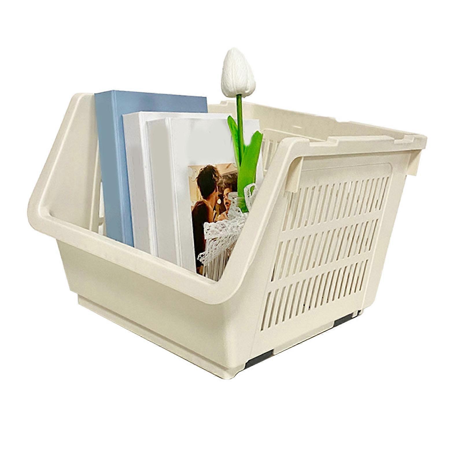 Stackable Storage Basket Space Saving Storage Bins Easy Installation Stable Plastic Shelf Container For Dormitory Living Room