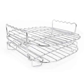Stainless Steel Airfryers Double Layer Rack Versatile Square Roasting Grill with Skewers Baking Tra