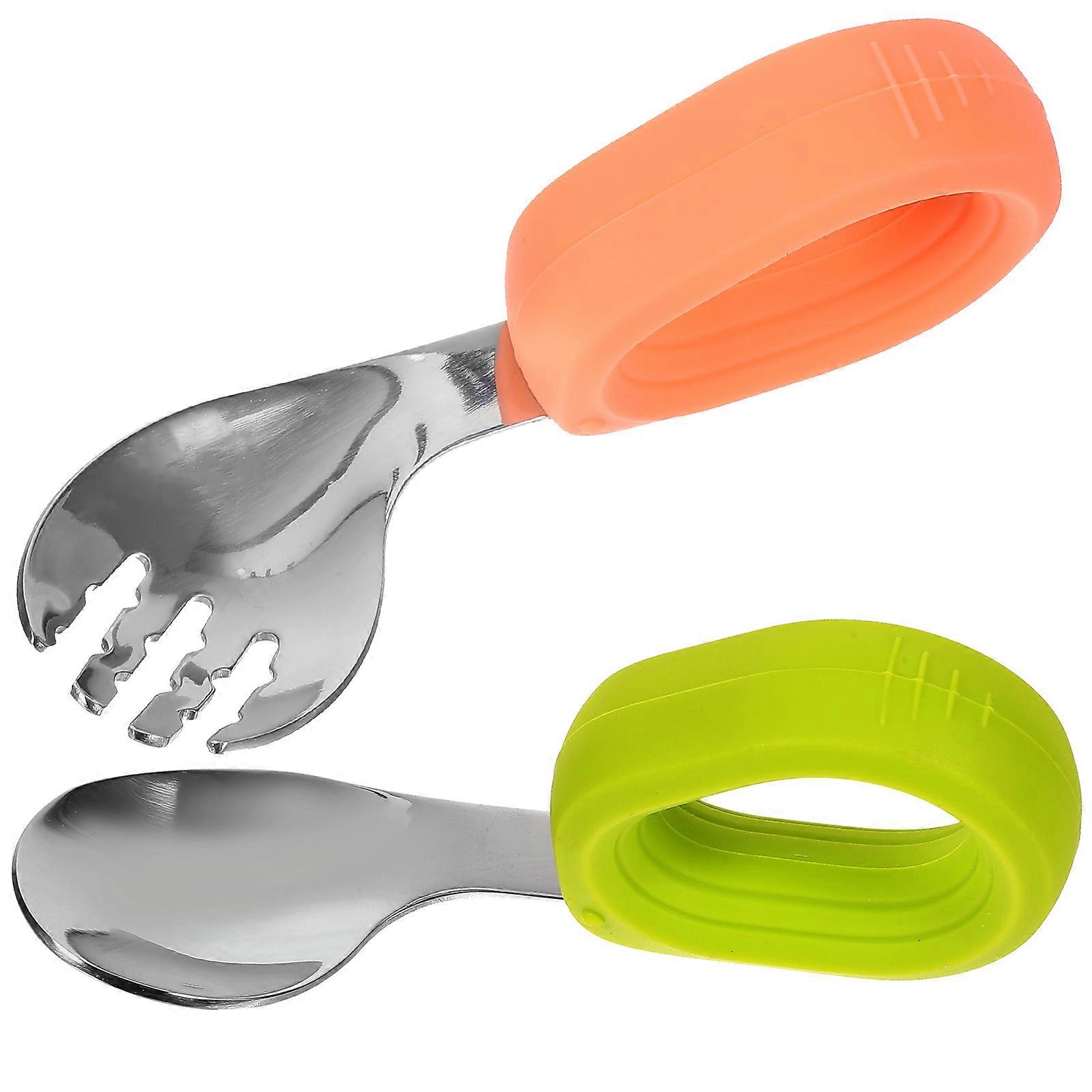 Stainless Steel and Silicone Baby Fork and Spoon Set for Home Use Assorted Color Lightweight and