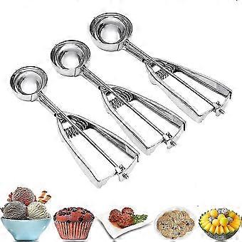 Stainless Steel Cookie Scoop Set - 3-Piece Ice Cream Scooper with Trigger Release for Baking, Melon Baller, Meatball Scoop
