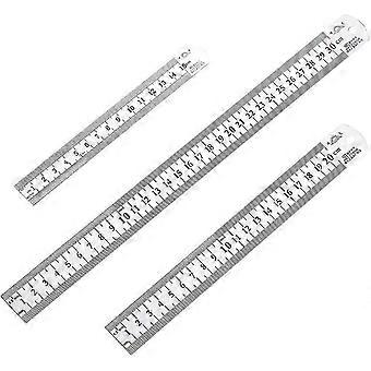 Stainless Steel Double-Sided Ruler Set, 15cm/20cm/30cm, Engineering and Teaching Measuring Tool, 3pcs