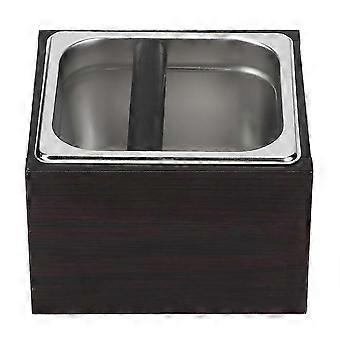 1. This is a fine quality coffee residue box, which is made of stainless steel material, solid and firm, can provides long service time.2. With detachable and rounded surface design, easy to clean, no dead ends.3. No mess anymore, it is great for using in coffee shop, milk tea shop and home.4. The non-slip solid wood base is made of high quality oak with fine workmanship.5. Convenient wide mouth and large capacity design, the coffee slag won't easily splashing out.