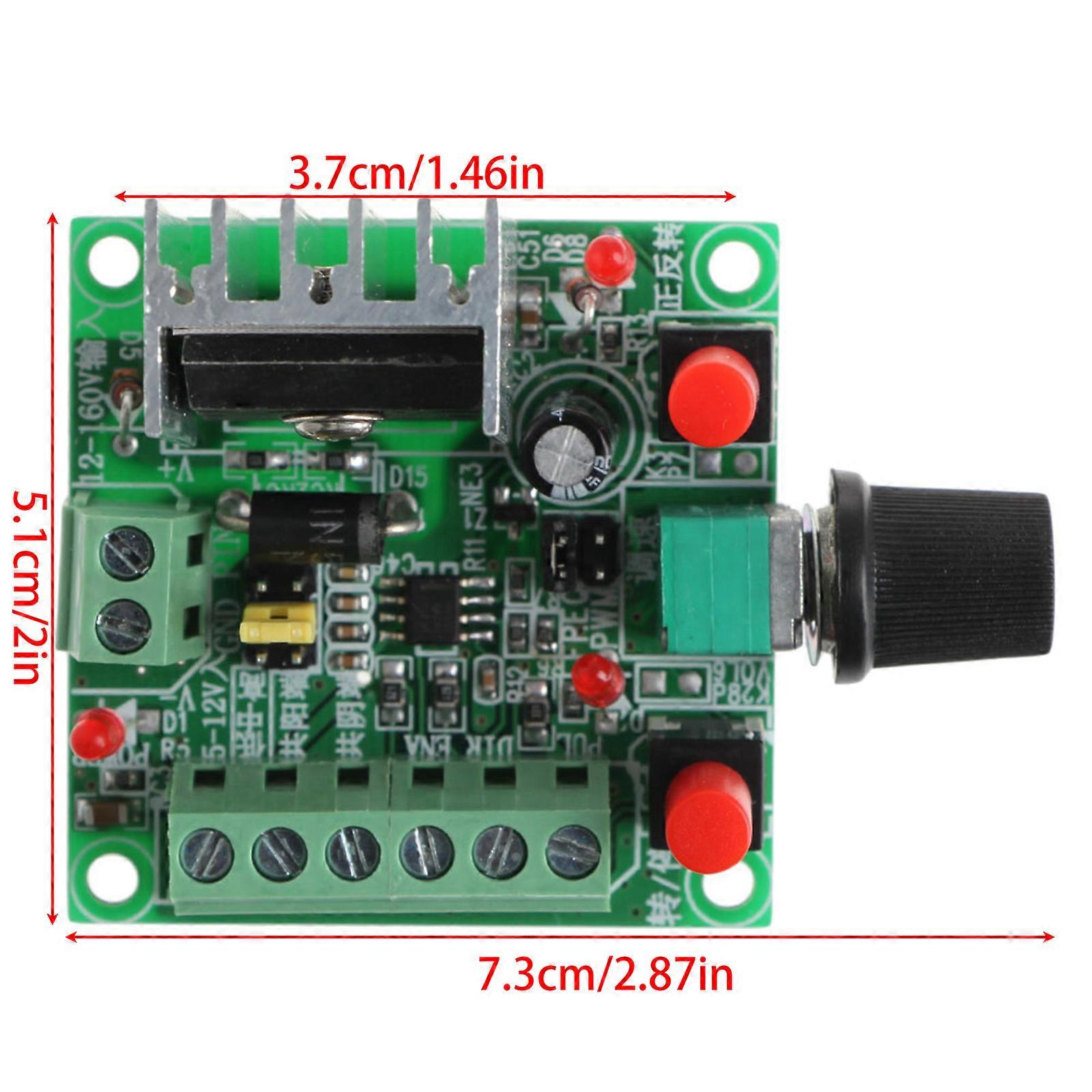 ["brand new and high quality\r\nMaterial: Electrical components\r\nColor: See pictures\r\nDescription\r\nThis is pulse module, can provide 2.5 khz-68 kHz frequency, power signal for stepper driver.\r\nIf you want to control the stepper motor, you should still use a motor driver.\r\nIf you want to change the Frequency Range, you can change C46 capacitance.\r\nPower supply: DC15-80V or for DC 12V.\r\nReverse engine and rotation, stop and run can be controller by keys.\r\nThe motor speed can be controlled by adjusting the potentiometer.\r\nSize: 73*51*37MM\r\nQuantity: 1Pc\r\nNot Retail Package\r\nNote: Due to the difference between different monitors, the picture may not reflect the actual color of the item. Thank you!\r\nPackage includes:\r\n\r\n1Pc x Stepper Motor Module Pulse Generator Signal Driver Controller Speed Controller"]