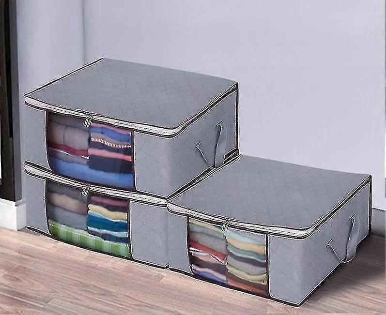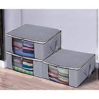 Storage Bag Large 3 Pieces, Foldable Clothes Storage With Durable Zipper And Handle Underbed Non-woven Fabric Storage Bag, Grey