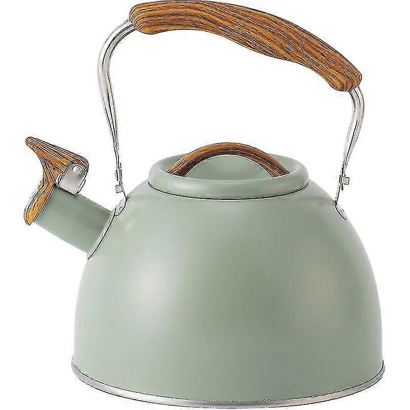 Stove Top Whistling Kettle, Stainless Steel Tea Kettle Teapot With Wood Pattern Folding Handle For Gas Stove Induction, 3l Tw