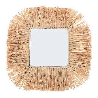 Straw Braid Mirror for Decor Glass Material Khaki Color Adds Chic Style to Your Space