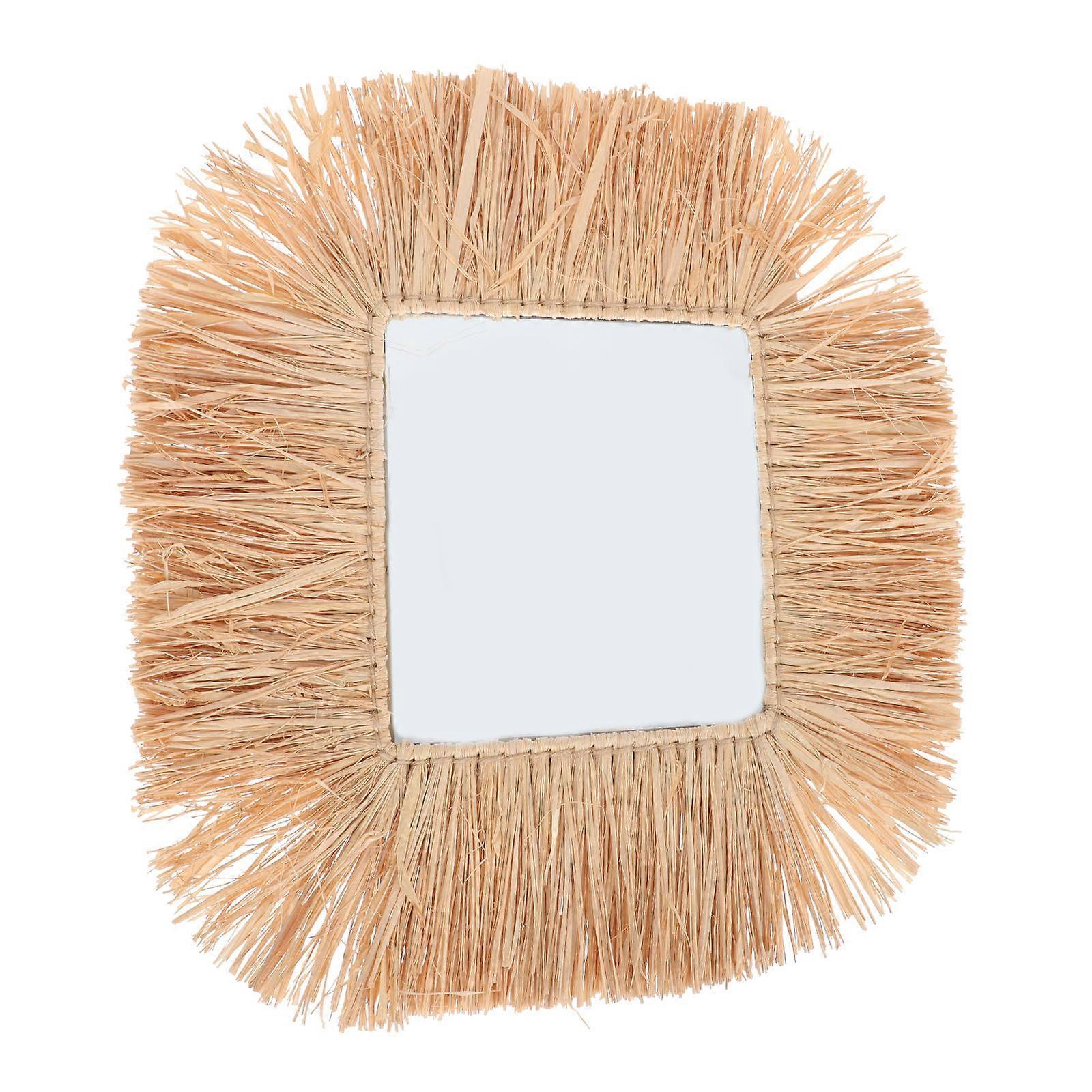 Straw Braid Mirror for Decor Made of Glass Khaki Color Adds Chic Vibe to Your Space 1Pc