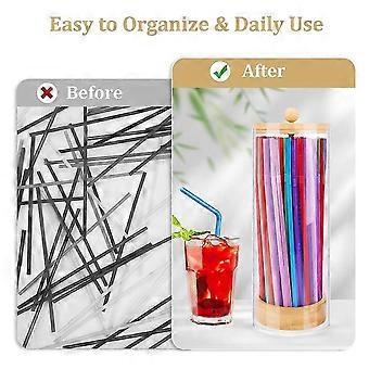 Straw Holder Dispenser suitable for Counter - Drinking Straw Dispenser with Bamboo Lid suitable for Standard Straws, Straw Organizer