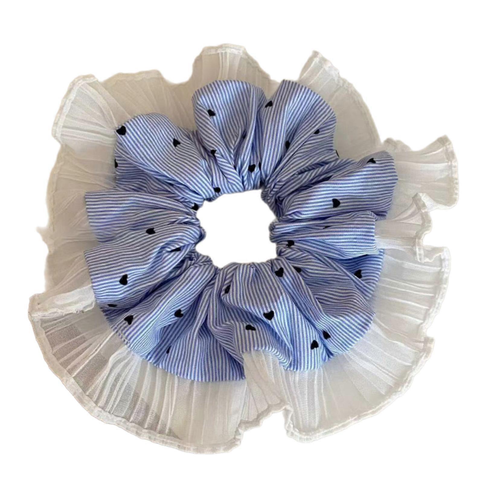 Stripe Heart Pattern Hair Tie Fashionable Multiple Layer Elastics Hair Ties for Various Ages and Occasion Blue pattern white l