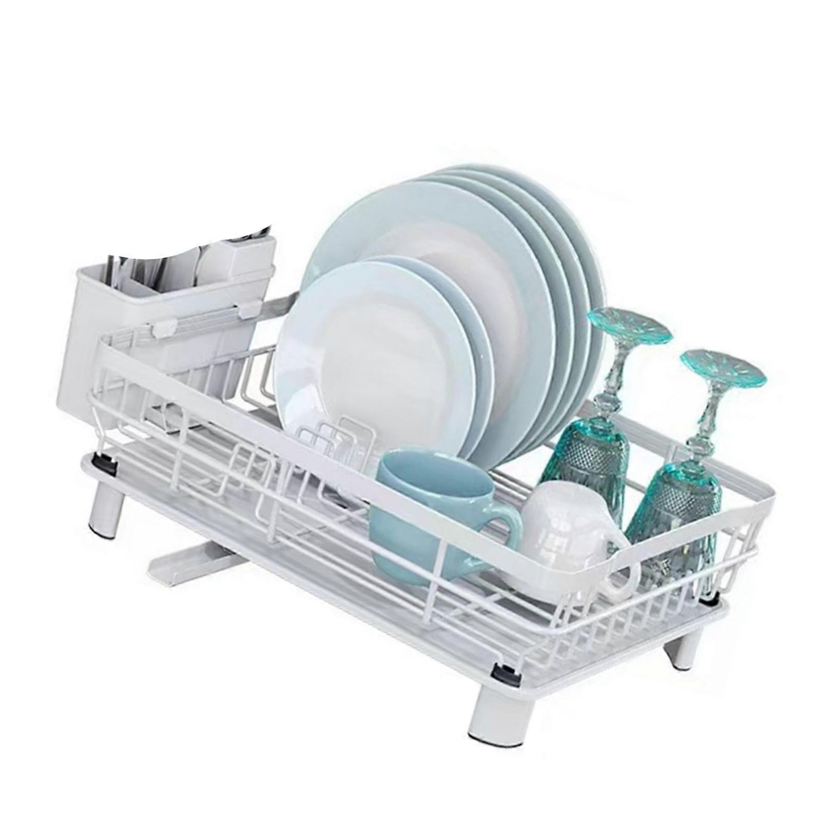 Strong Iron ABS Dish Drain For Countertop Planner Quick Drying Kitchen Storage Solution White