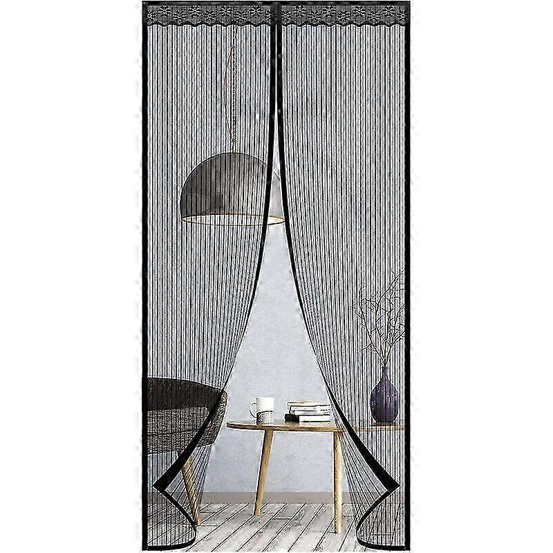 Sturdy Patio Door Mesh Insect Screen with 90 x 210 cm Dimensions Equipped with Strong Magnets and Adhesive Tape (Black) for Effective Mosquito Barrier