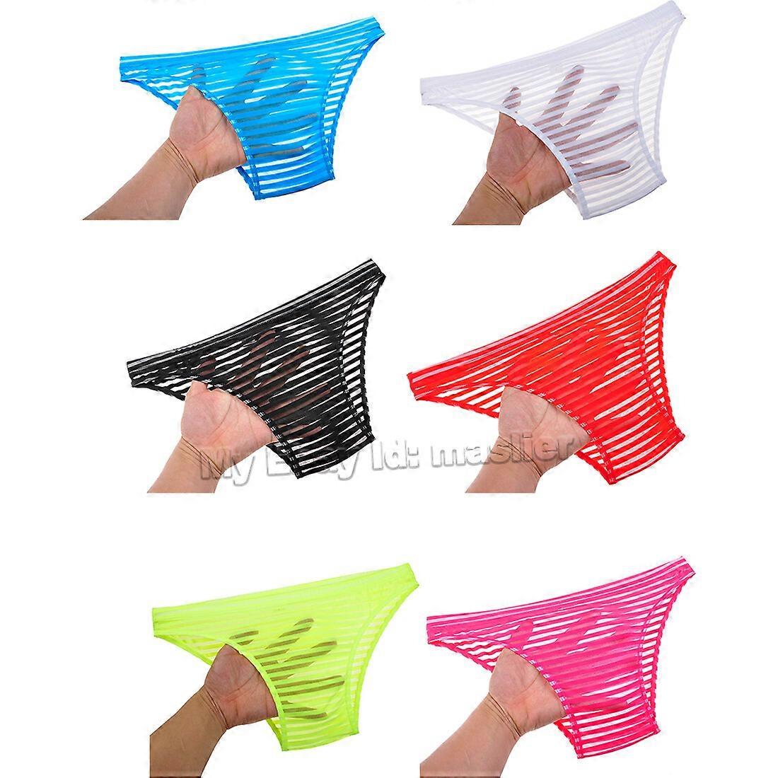 Stylish 3Pcs Men Flat Front See-through Stripe Mesh Boxer Bikini Brief Underpant