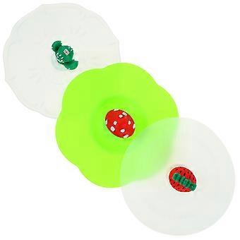 Stylish Cartoon Silicone Cup Cover 3Pcs Sealed Mug Lids For Daily Use Assorted Color Round Shape Airtight Seal