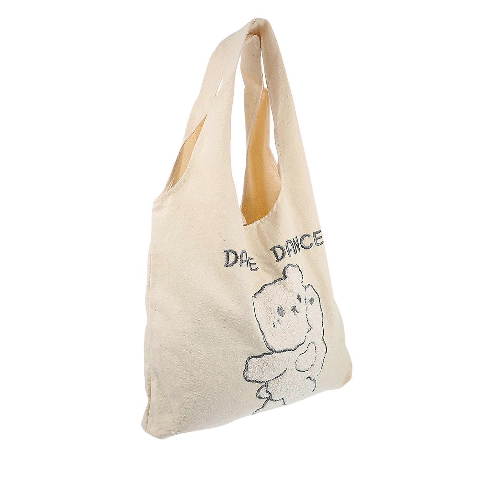 Stylish Durable Canvas Shoulder Bag for Students – Multi Functional Tote for Shopping, School, Beach, and Travel with Embroidered Design