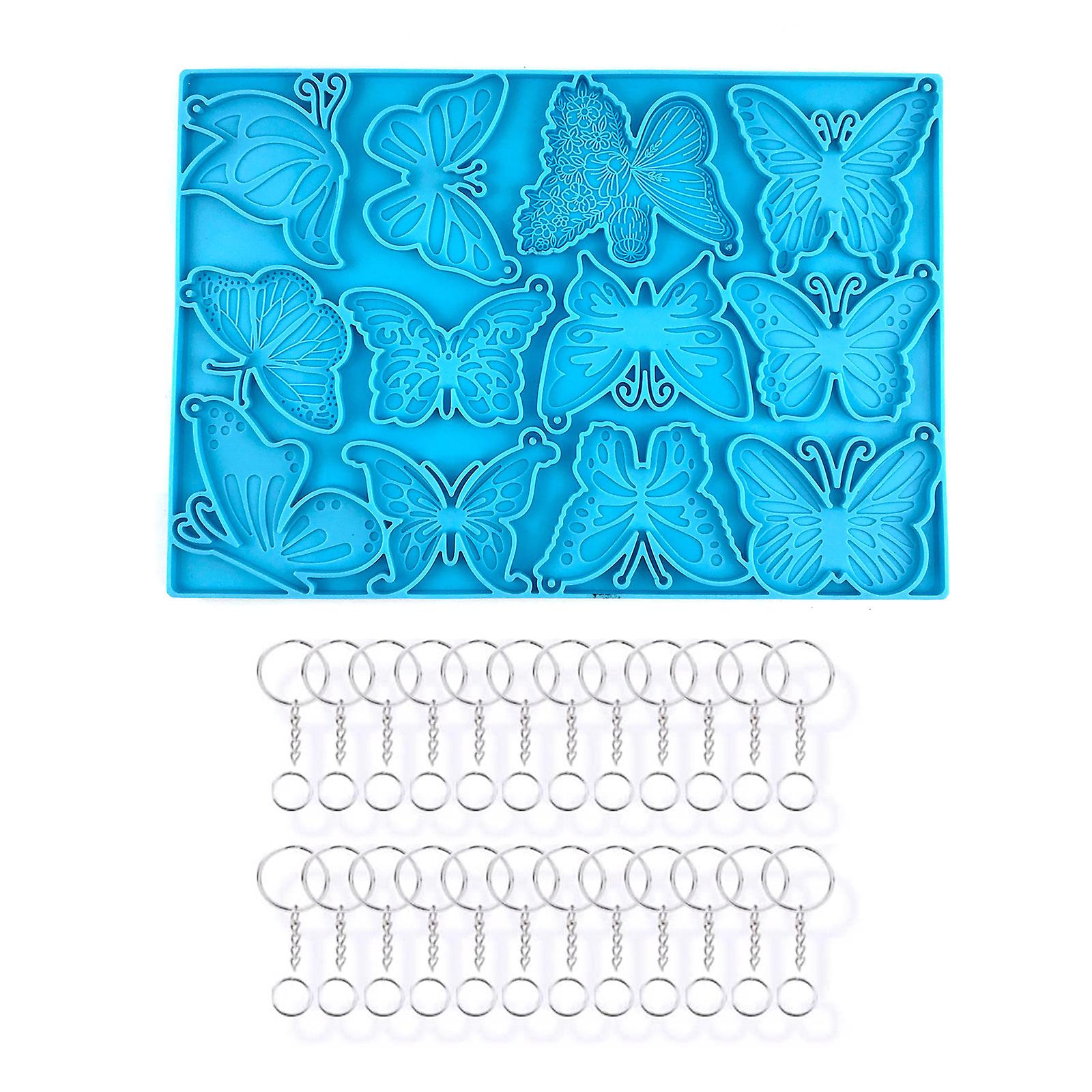 for Butterfly keychain:the for butterfly keychain mold contains 12 slots with different wings pattern and post,meet all you need and even more.
