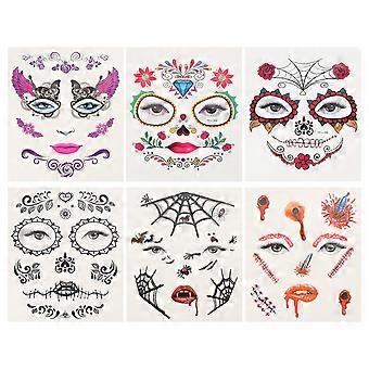 Sweat-proof Halloween Face Stickers Easy to Stick and Remove Assorted Color 6x5x0.1cm 6 Sheets