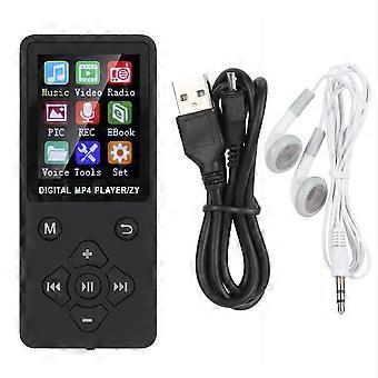 Features 1.Matte material body, non-slip hand feel, new simple MP3 style. 2.Support music, radio, recording, video, e-book, built-in stopwatch function. 3.Support multiple play modes. 4.Has a breakpoint resume function. 5.Awesome seven button design, one-button menu, one-button return function. specificationFeatures: 1. Support Bluetooth 4.2 function. 2. Matte material body, non-slip hand feel, new simple MP3 style. 3. Maximum support 32G memory card (accessories do not contain memory card, customer-provided memory card is required) 4. Support music, radio, recording, video, e-book, built-in stopwatch function. 5. Support multiple play modes. 6. MP3 comes with a card slot, plug and play, support MP3 music format and AMV video format. 7. Built-in 250mAh polymer lithium battery, can play continuously for 6-8 hours. 8. Has a breakpoint resume function. 9. Default English, built-in 13 languages can be switched at will. 10. Awesome seven button design, one-button menu, one-button return function. 11. Adjustable power saving mode and sleep mode, perfect partner for relaxing songs at night. s: Music function: support MP3 format Video function: support AMV format Picture function: support JPG, JPEG format E-book function: support TXT format Bluetooth function: support Bluetooth 4.2 (compatible with most Bluetooth devices in the market) Radio function: support Recording function: support Stopwatch function: support Timed shutdown function: support Battery capacity: 250mAh (with circuit protection) Continuous use time: 4-6 hours Charging time: 90 minutes Maximum support 32G memory card (accessories do not contain memory card, customer-provided memory card is required) Screen size: 1.8 inches Screen color: color screen Language: Chinese, English, German, French, Spanish, Portuguese, Japanese, Turkish, Russian, Indonesian, Thai, Vietnamese, Hebrew. Size: Approx. 9*4*1cm/3.54*1.57*0.39inch Instructions: M (menu) button in the upper left corner: Press to bring up the menu interface. The back button in the upper right corner: Short press to exit the menu or volume setting, long press to exit to the main menu mode. LAST button on the left: Short press to switch to the previous file, long press to rewind. NEXT button on the right: Short press to switch to the next song file, long press the fast forward function. The + button above: Volume up, or move the menu selection up. The - button below: Volume down, or move the menu selection down. The middle button is the play button: Short press to pause, long press to shut down. Package List: 1 x Host 1 x Data cable 1 x Headphone cable 1 x User manual PackageList
