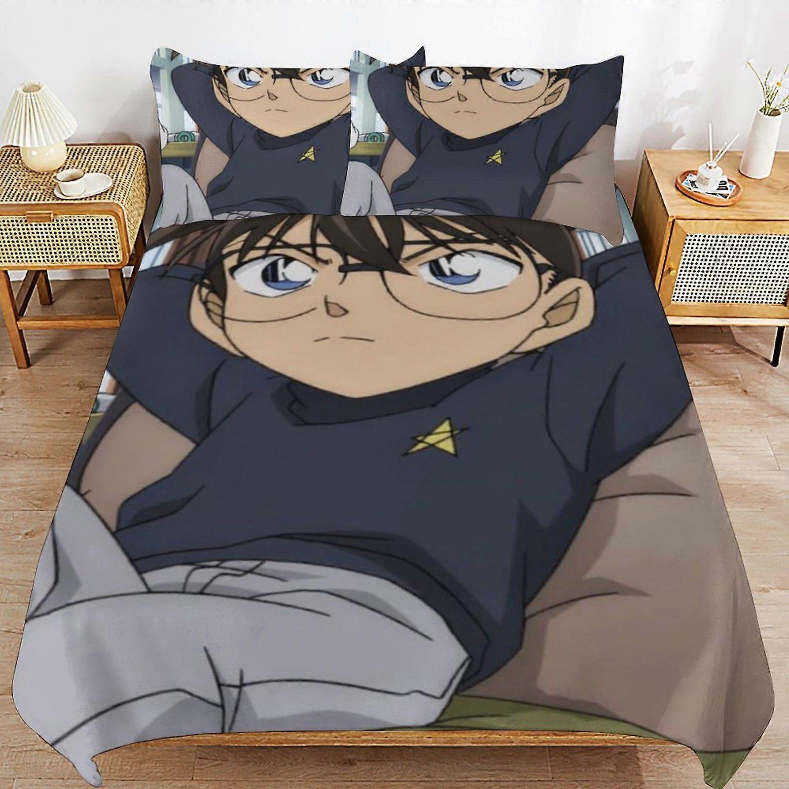 T45 Conan Edogawa Practical Zip Function Smooth Bedding Surface Soft Layer Duvet Cover Sets for Rest Night V45