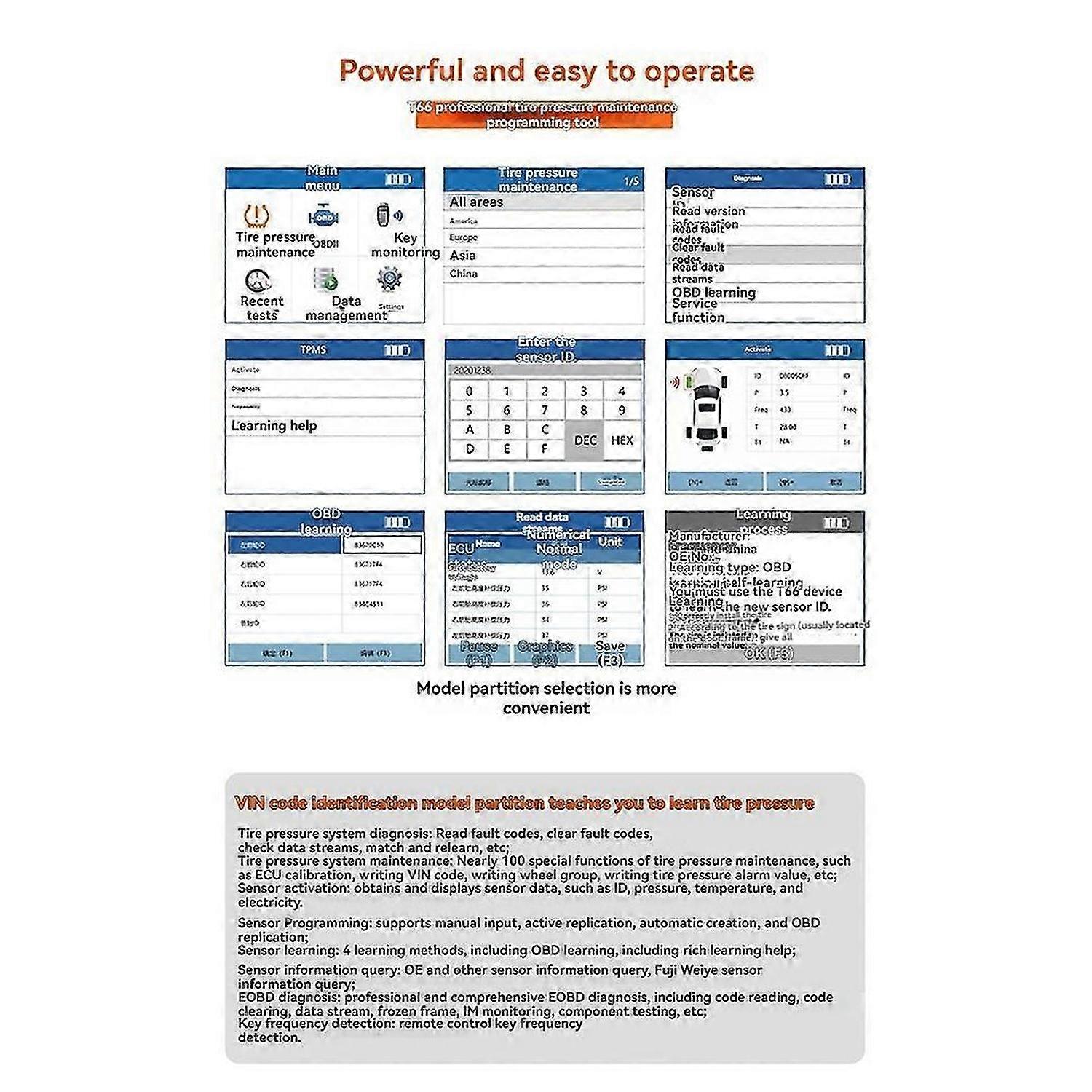 T66 Auto Tire Pressure Tool TPMS Relearn Activate Sensors Programming Car OBD2 Code Reader Diagnosti