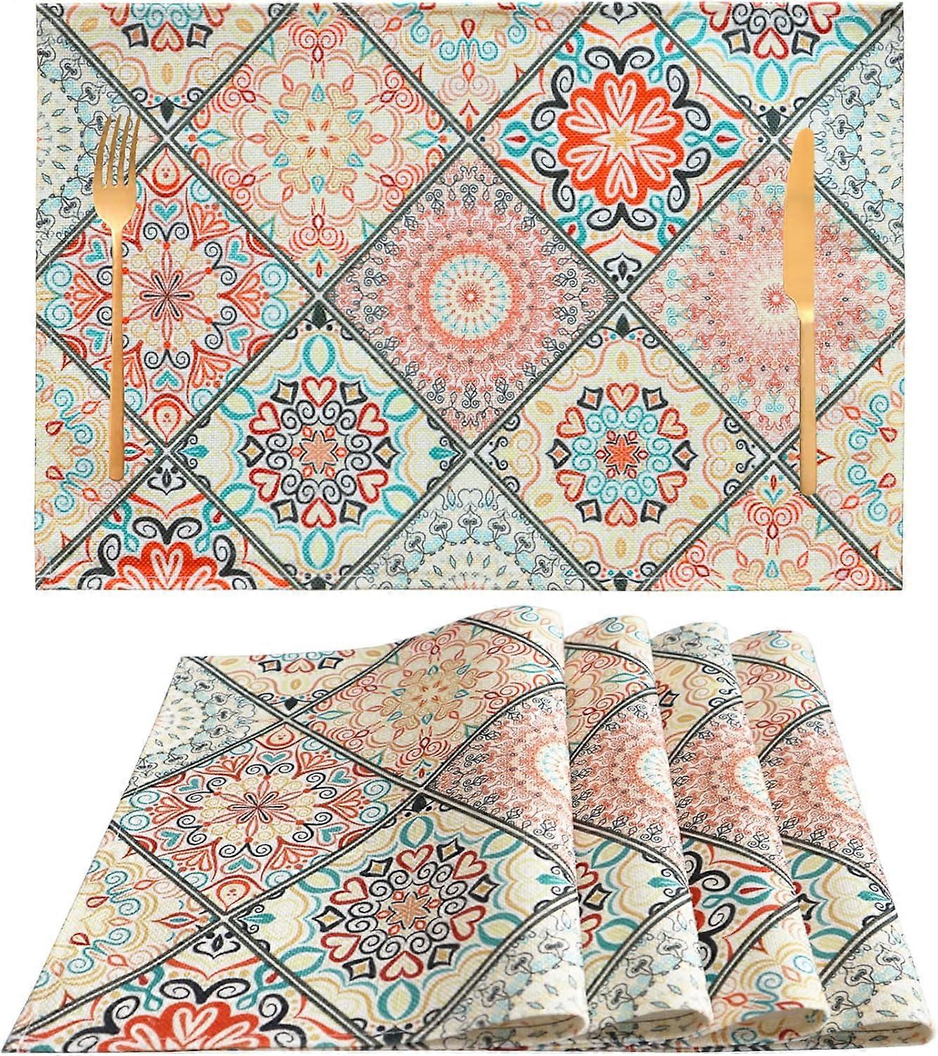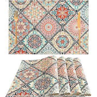 Table Placemats Set of 4 Boho Place Mats Linen Wipeable Placemats Heat Resistant Washable Placemats Fabric Waterproof Rectangle Table Mat for Kitchen