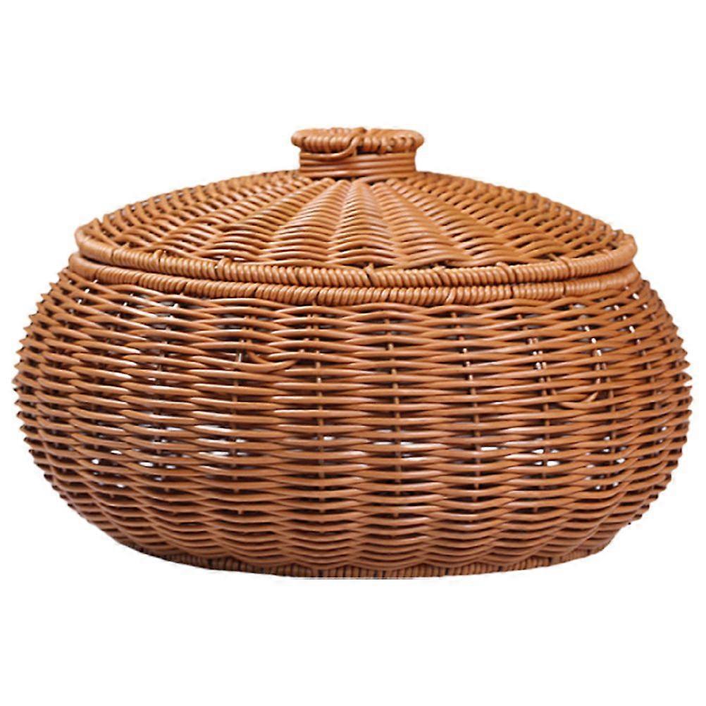 Table Storage Basket Woven Basket Weaving Container with Lid for Sundries Toys Snack