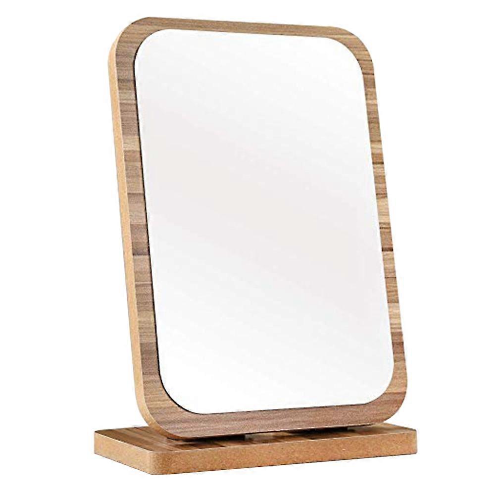 Tabletop Vanity Mirror Rectangular Grooming Transparent Wood Glass 1Set