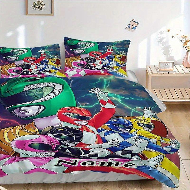 TE1188 3pcs Mighty-Morphin-Power-Rangers Printed Bedding Set, Including 1 Quilt Cover and 2 Pillow Shams, Without Filling, Soft and Comfo