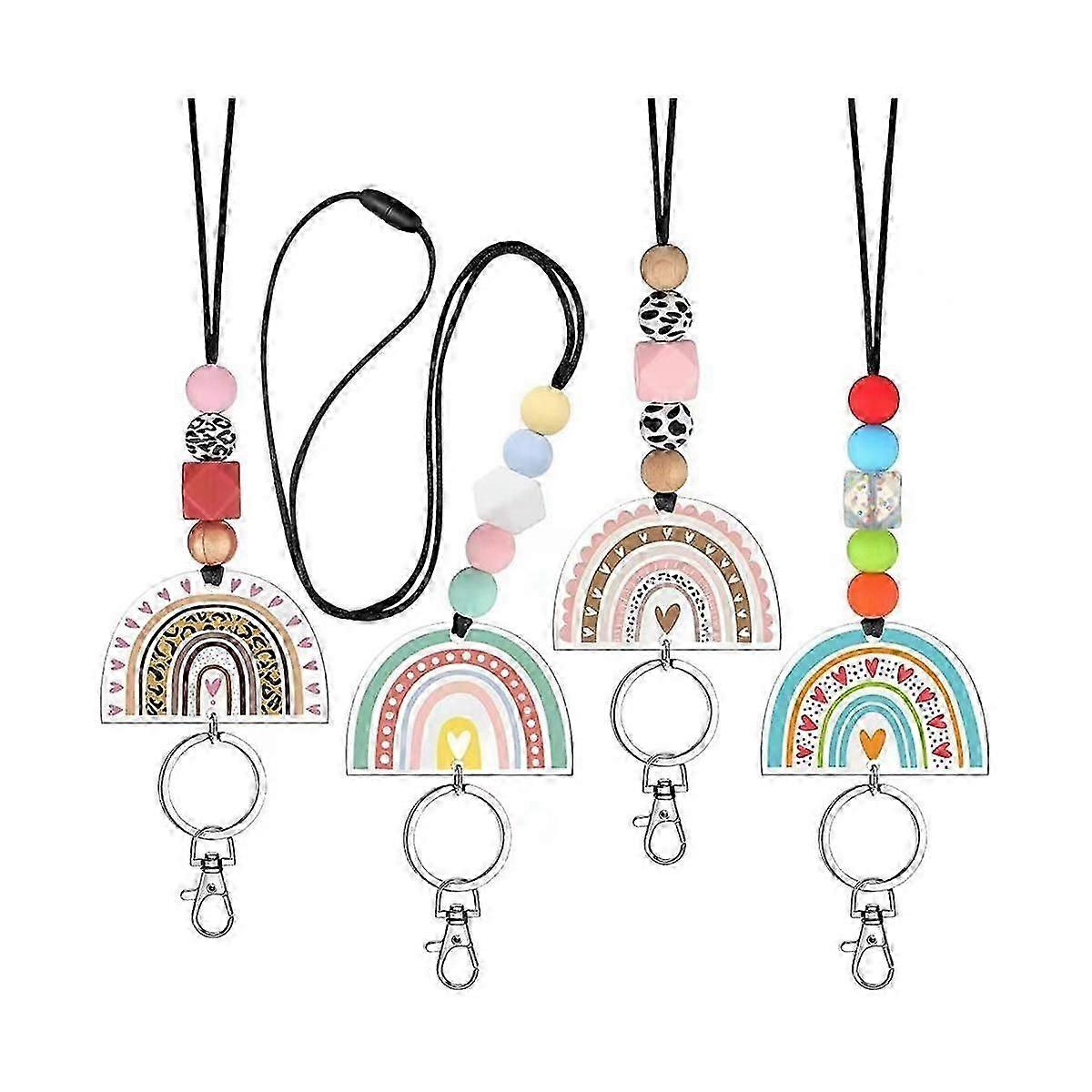 Teacher Lanyards for ID Badges and Keys Cute Beaded Lanyards with Keychain Silicone Beaded Keychain