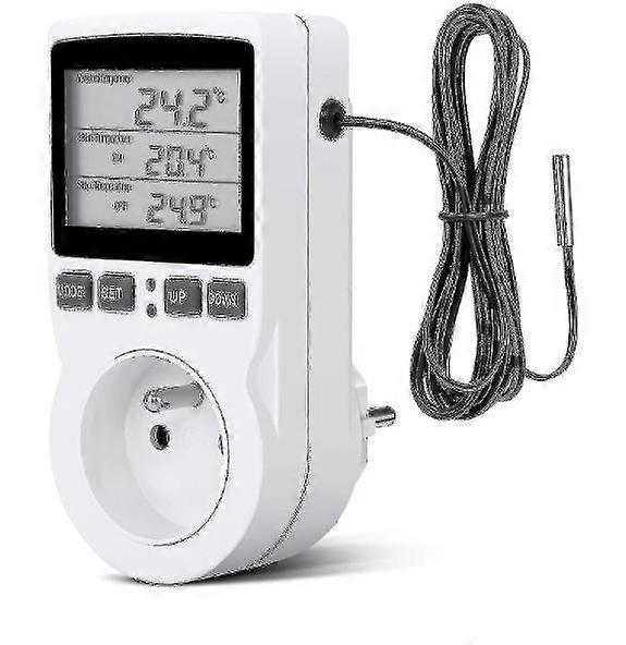 Temperature Controller ,Digital Temperature Controller Socket Heating Cooling Thermostat 230V with Sensor Socket and Probe LCD Screen