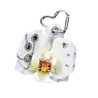 Textured Phalaenopsis Keychain Artistic Design Key Holder Charm Multi Purpose Accessory Hanging Pendant White