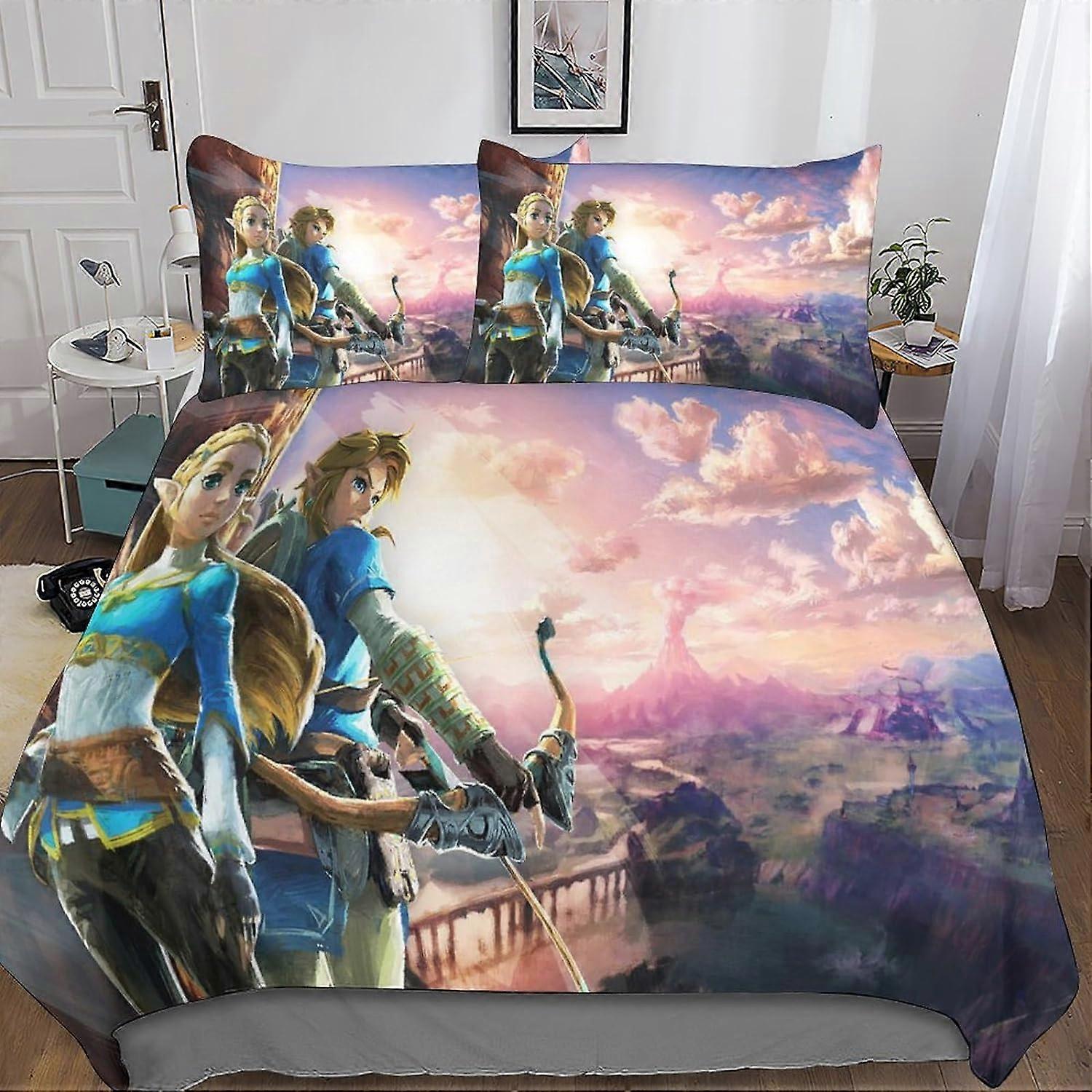 The Legend of Zelda 3D Printed Bedding Set Duvet Cover Pillowcase, 3 Piece Bedding Set with Zipper Closure, for Adults and Kids Double