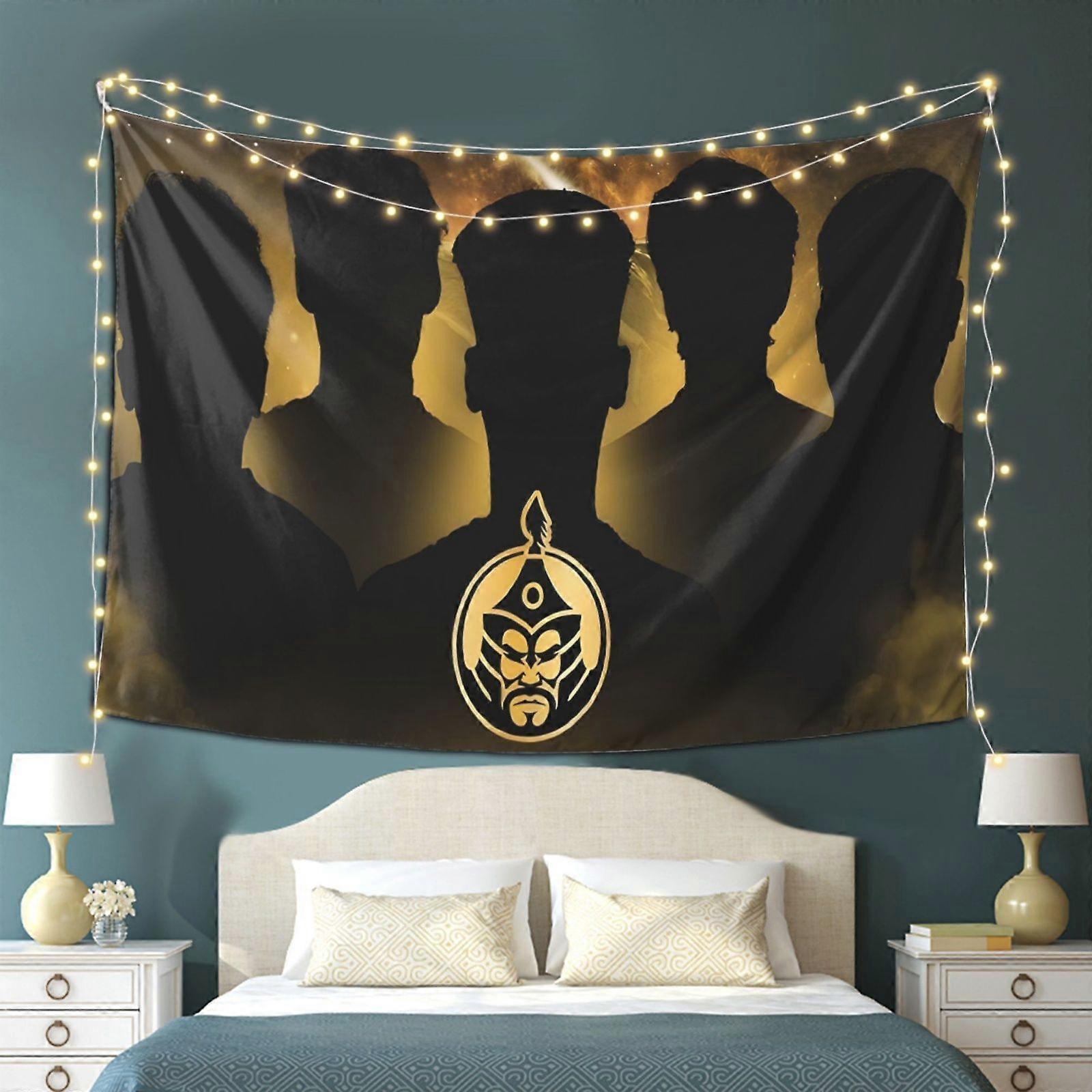 THE MONGOLZ Tapestry - Extra Large Wall Hanging, Durable & Soft Peach Light Beige Fabric, Intricate Golden Mask Design --QAKLF115