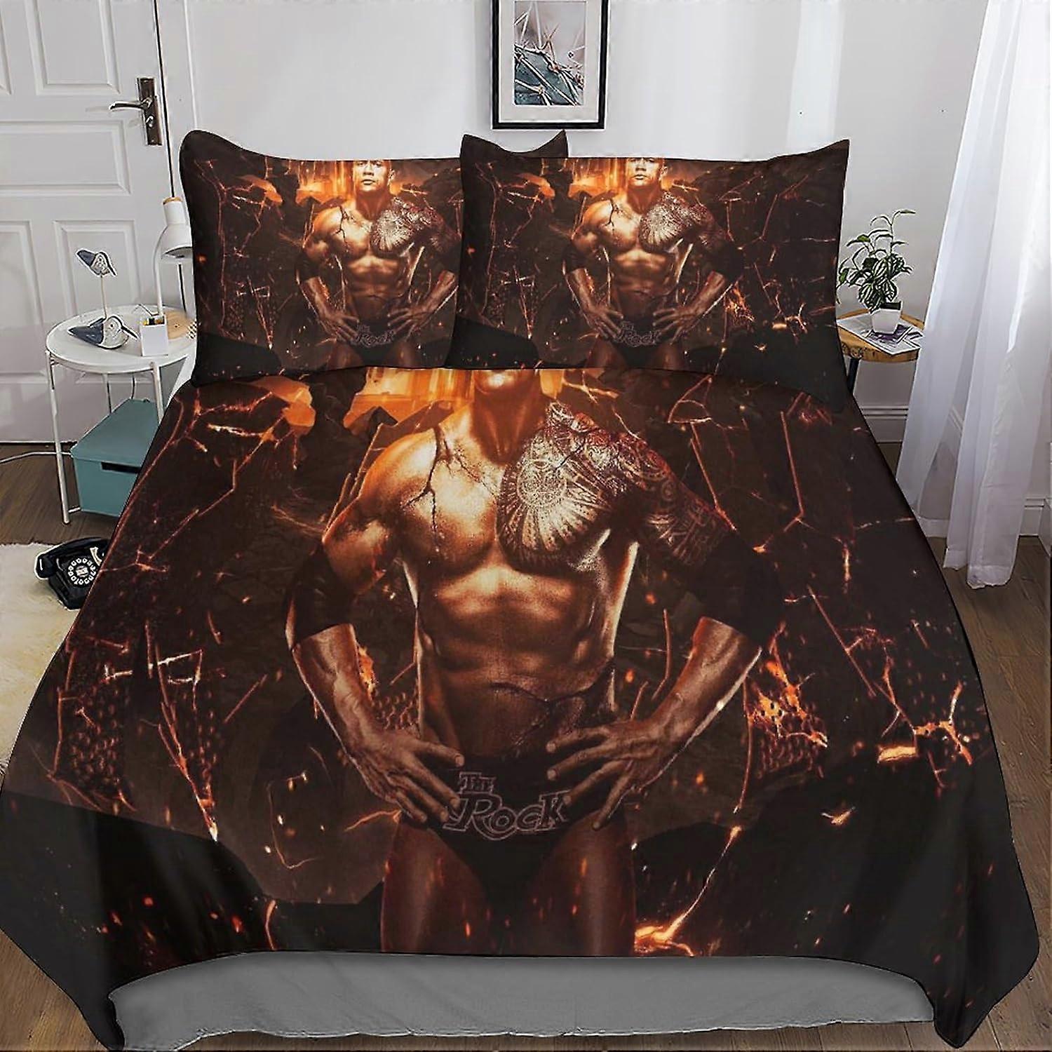 The Rock 3D Duvets and Bedding Sets with Pillowcase, Dwayne Johnson Bedding Duvet Cover, 3 Piece Microfiber Bedding Set with Zipper Closure Pillowcase