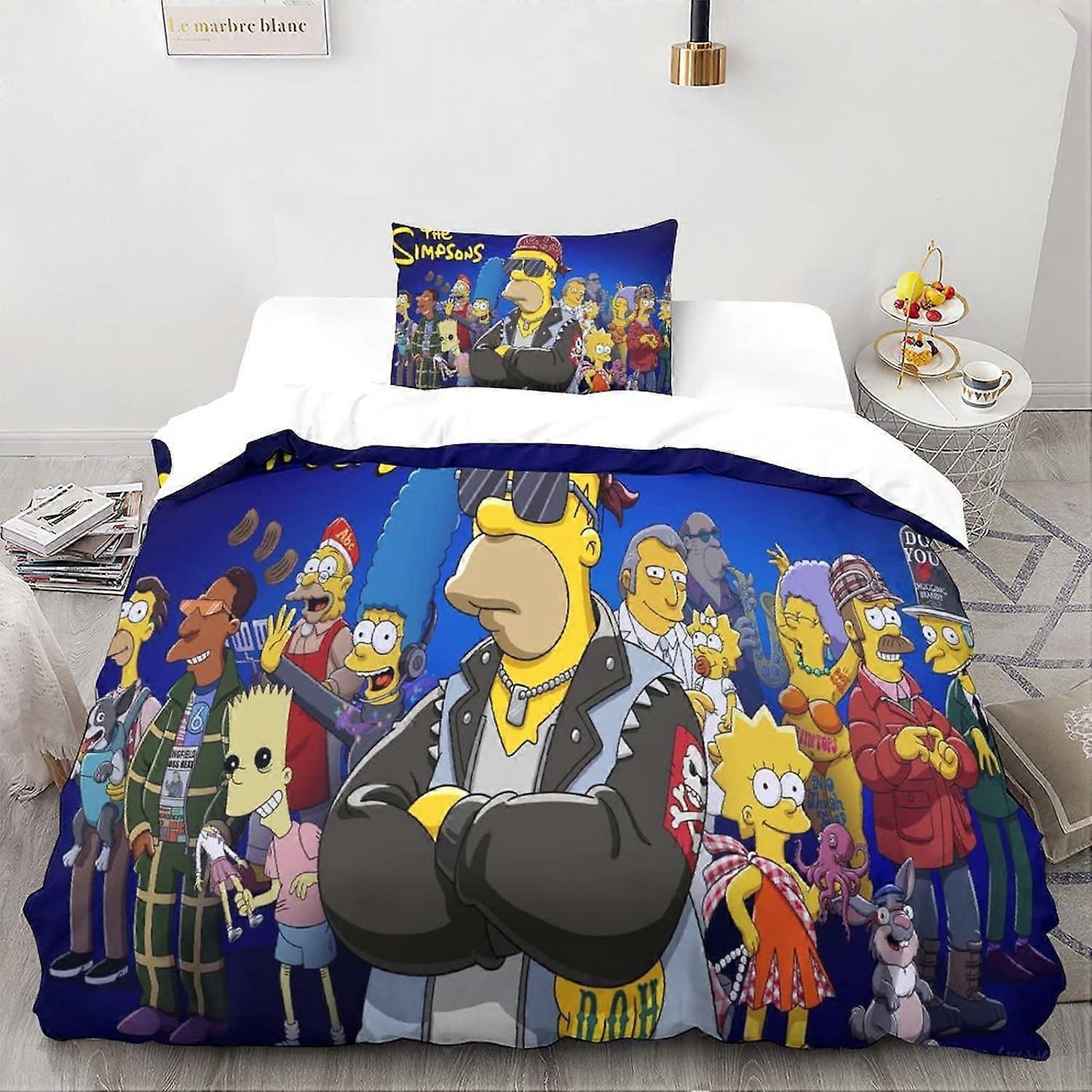 The_Simpsons Animation Bedding Set Animation Characters Duvet Cover Set Hypoallergenic Soft Comforter Quilt Cover with Pillowcases 135*200 CM