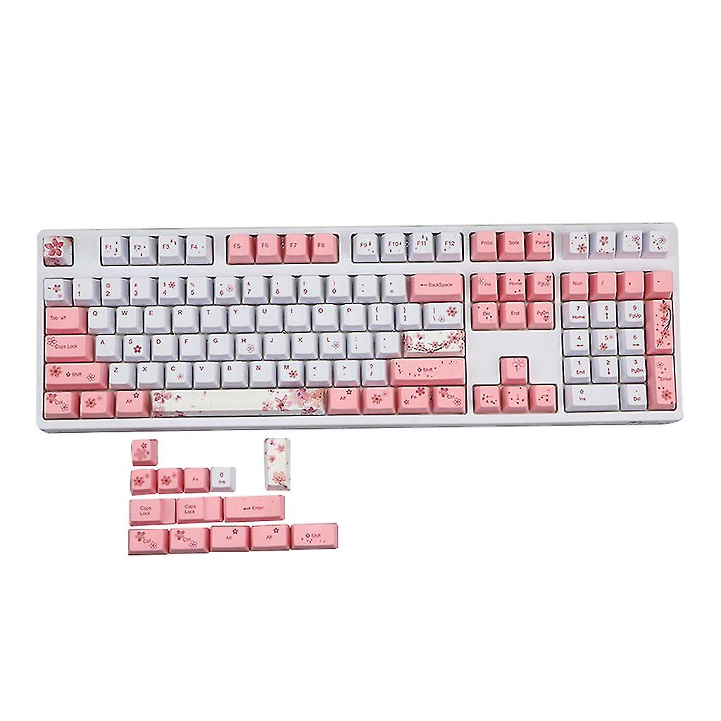 Thick Pbt Switch Mechanical Keyboard Retro Keycaps Cherry Blossom Pattern