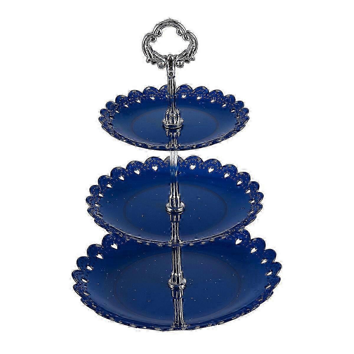 Three-Layer Fruit Plate and Cake Stand for Kitchen, Party Dessert Storage Rack in Blue
