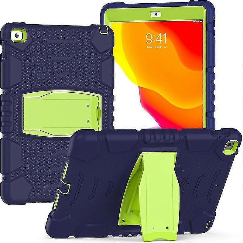 Three-layer Protective Screen Frame + Pc + Silicone Shock Protection CaseFor Ipad 10.2 2021/2020/2019 (Navy Blue + Lime Blue)
