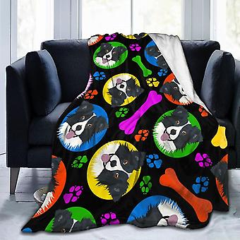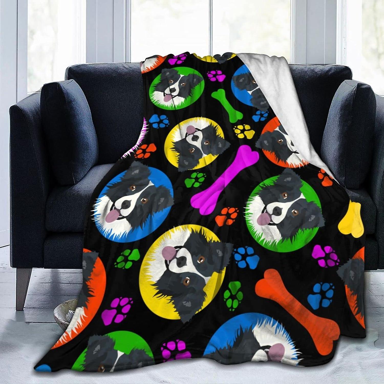 Throw Blanket Colorful and Playful Border Collie Flannel Blanket Soft Comfortable Blanket Washable Throws for Bed Sofa