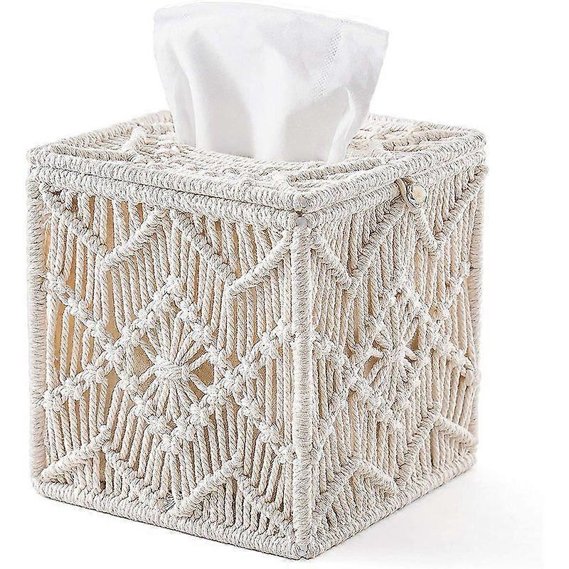 Tissue Box Cover Boho Decor Square Paper Tissue Holder With Bead Buckle Macrame Napkin Tissues Organizer