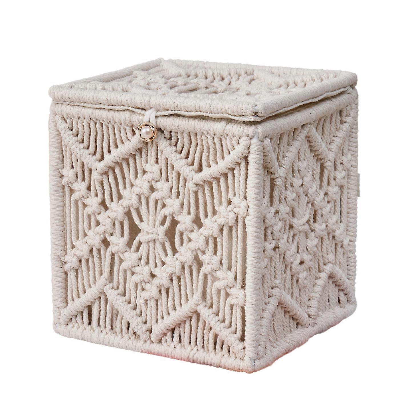 Tissue Box Lid Boho Style Decorative Square Tissue Holder with Bead Buckle Lace Napkin Tissue Storage Box for Home Decor