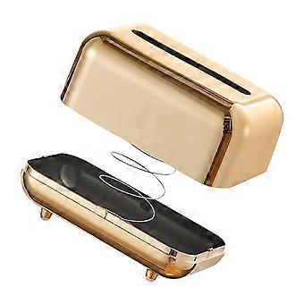Tissue Holder Rectangular Tissue Storage Box Office Use Abs Golden Color Space Saving 1Pcs
