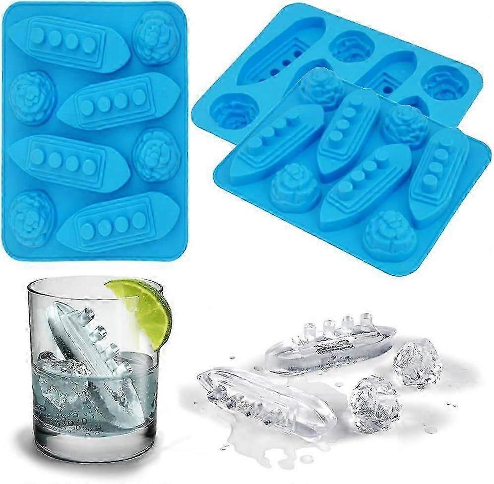 Titanic and Iceberg Ice Cube Trays, Titanic Film Theme Ice Maker Chocolate Candy Soap Crayon Wax Melt Making Mold, Silicone Ice Cube Trays, Blue