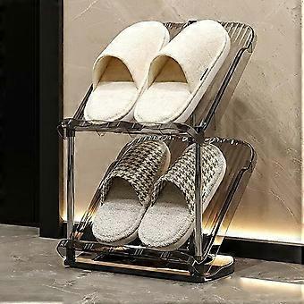 TKdaddy Storage Holders & Hooks 2 Tier PP + Stainless Steel Pipe Narrow Shoe Rack Easy Assembly Space Saving Storage Shelf Transparent Grey