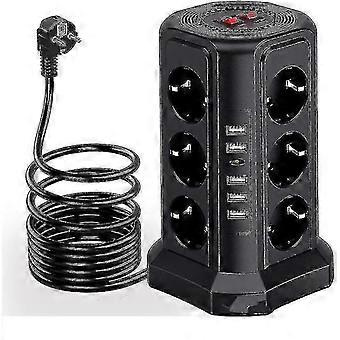 Tower Lightning Arrester And Surge Protector, Power Strip With 5 Usb Ports And 12 Sockets, Power Strip With And 3 Switches, Black Edition