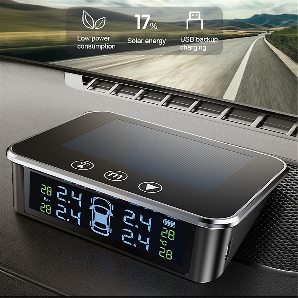 Tpms Tyre Pressure Monitoring System Solar Smart Car Voice Alarm Digital Lcd Display Touch Switch Tyre Pressure Gauge