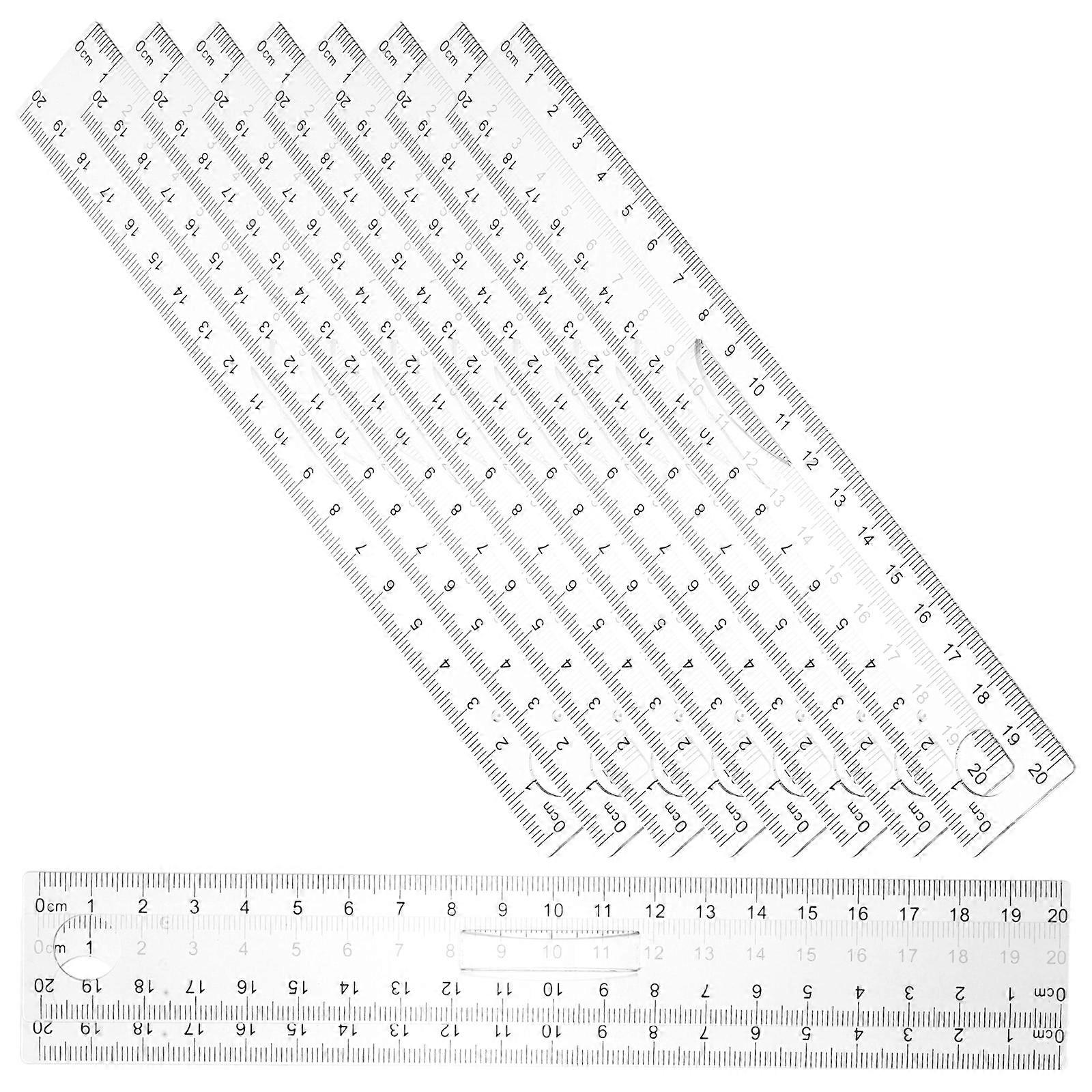 This magnifying plastic ruler is a valuable tool for students, teachers, and professionals. Its transparent plastic material allows for easy reading of measurements and ensures durability. The ruler's length is perfect for various office, teaching, and drawing tasks. The magnifying circle at the end of the ruler provides enhanced visibility, making it suitable for detailed work. Its compact size and lightweight design make it easy to carry and store, making it a practical choice for anyone on the go. Features -Color:Transparent -Material:Plastic -Size:20.00X2.90X0.01cm/7.86X1.14X0.00in -This product is made of transparent plastic material, which provides exceptional visibility and accuracy when measuring or drawing. -This ruler is perfect for office, teaching, and drawing tasks, making it a versatile tool for various applications. -The magnifying circle on the ruler enhances visibility, making it easier to read small numbers or lines. -Its compact size and lightweight design make it easy to carry around, making it a practical choice for students, teachers, and professionals on the go. -Whether you need to measure, draw, or calculate, this transparent plastic ruler is a reliable and convenient tool to have in your stationery collection. Package list: 20 x Rulers