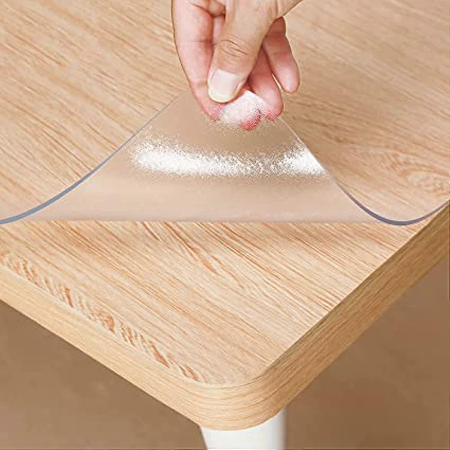 1. PVC: Environmentally friendly PVC plastic material, the desk pad is from cracks, curls, odors, or discoloration. It can be reused multiple times, offering durability and costeffectiveness. 2. Protection: The table mat can serve as a tablecloth or furniture protector. Its rounded edge design safeguards your arms from bumps, scratches, and injuries. 3. Transparency: Transparent/frosted table mat keeps your calendar, notes, todo lists, or photos visible underneath. The frosted surface prevents water stains and air bubbles. 4. Easy to Clean: Waterproof and oilresistant. Simply wipe away dirt with a damp cloth or handkerchief, saving time on household chores.