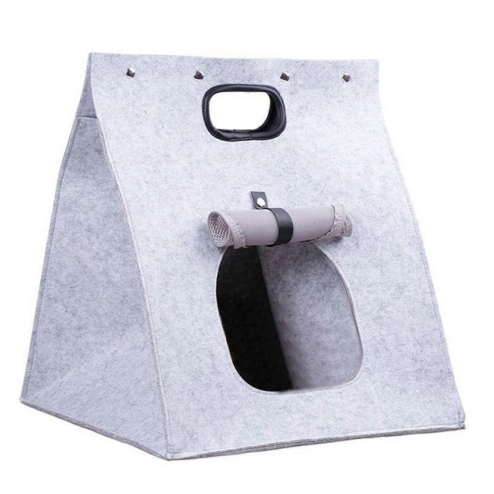 Travel Friendly Felt Cat Bed Take Comfortable Transmutable Portable and Featuring Waterproof Base for Pet Owners Light Grey
